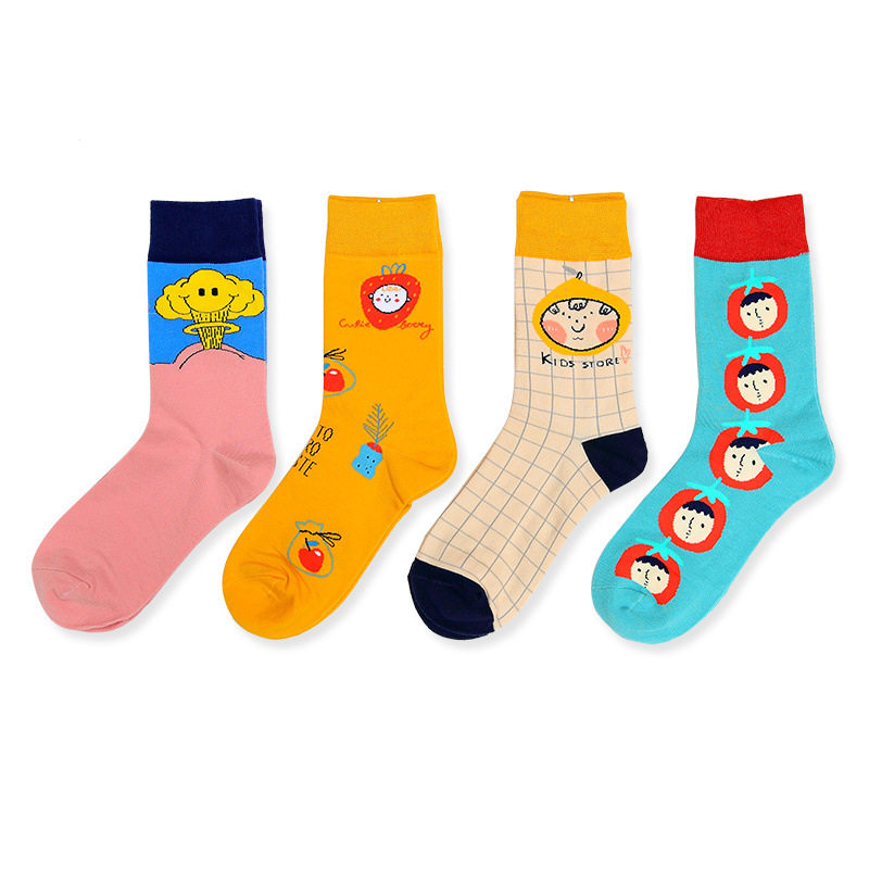 Four seasons can be worn with Fun combed cotton Woman Sox Korean version Fruit of the cylinder Sox American and American Ins Chains Teenage Cotton Socks
