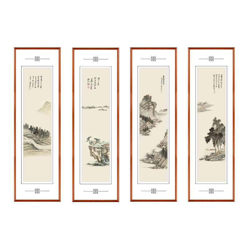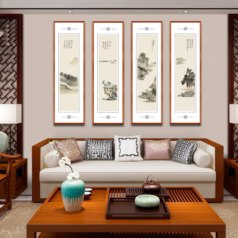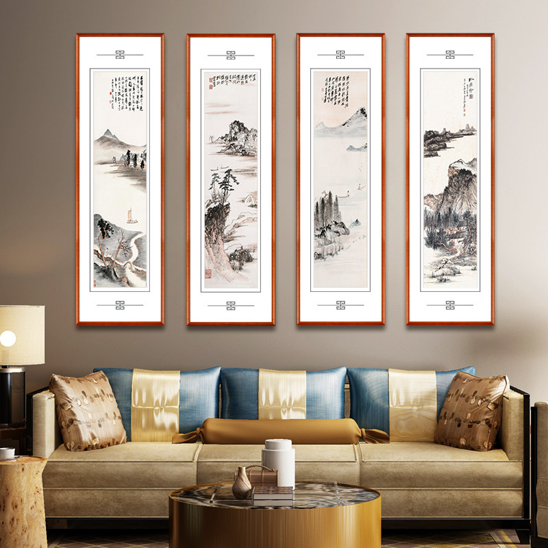 New Chinese Four Union Zhang Daqian Living Room Landscape Painting Country Painting house Tea room Four-screen hanging painting sofa Background fresco