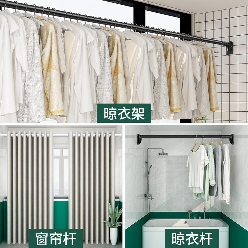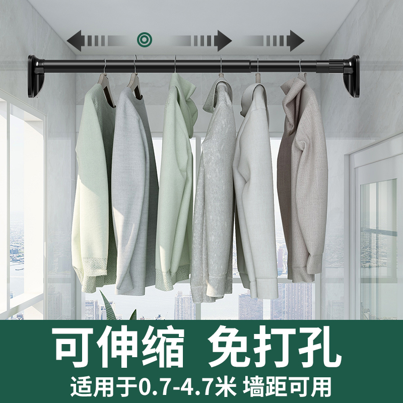 Telescopic Rod free of perforated clothesline window curtain rod bath curtain rod telescopic single-bar clothes hanger telescopic lever Telescopic Rod