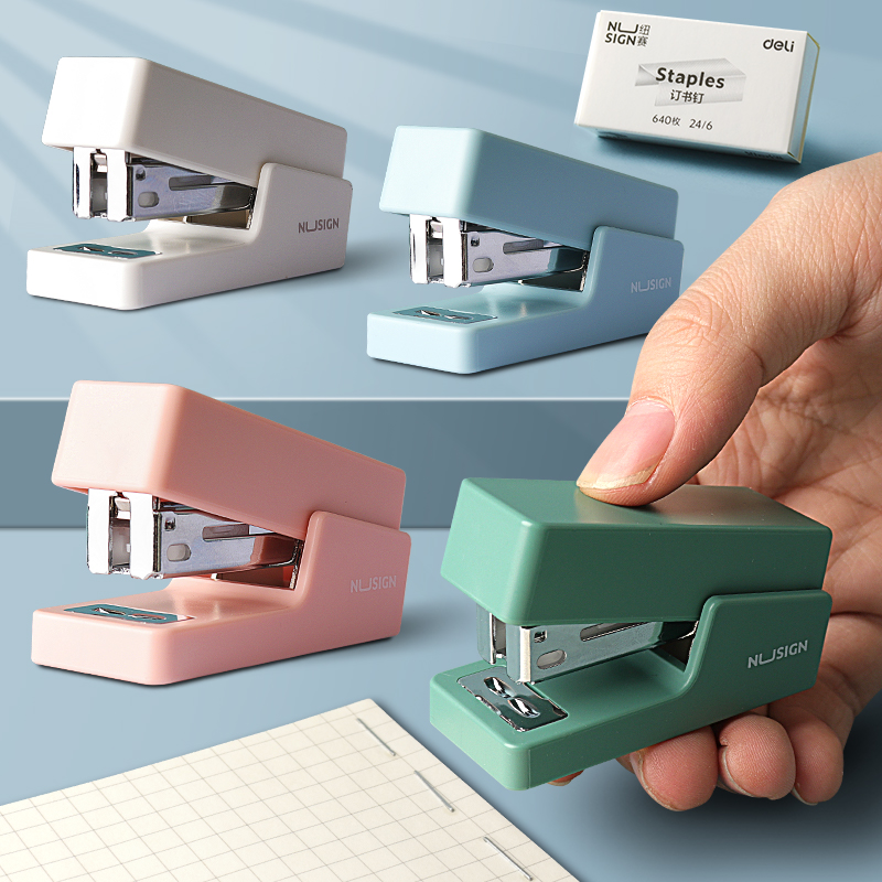 Deli stapler mini small set multi-function portable stapler student with cartoon cute large stapler female girl heart office labor saving book set machine minimum booking No. 12 stationery needle