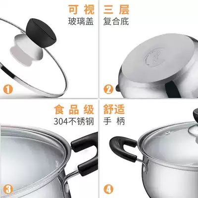 Supor soup pot 304 stainless steel thickened pot Big milk pot Household small stew pot Non-food pot Induction cooker gas