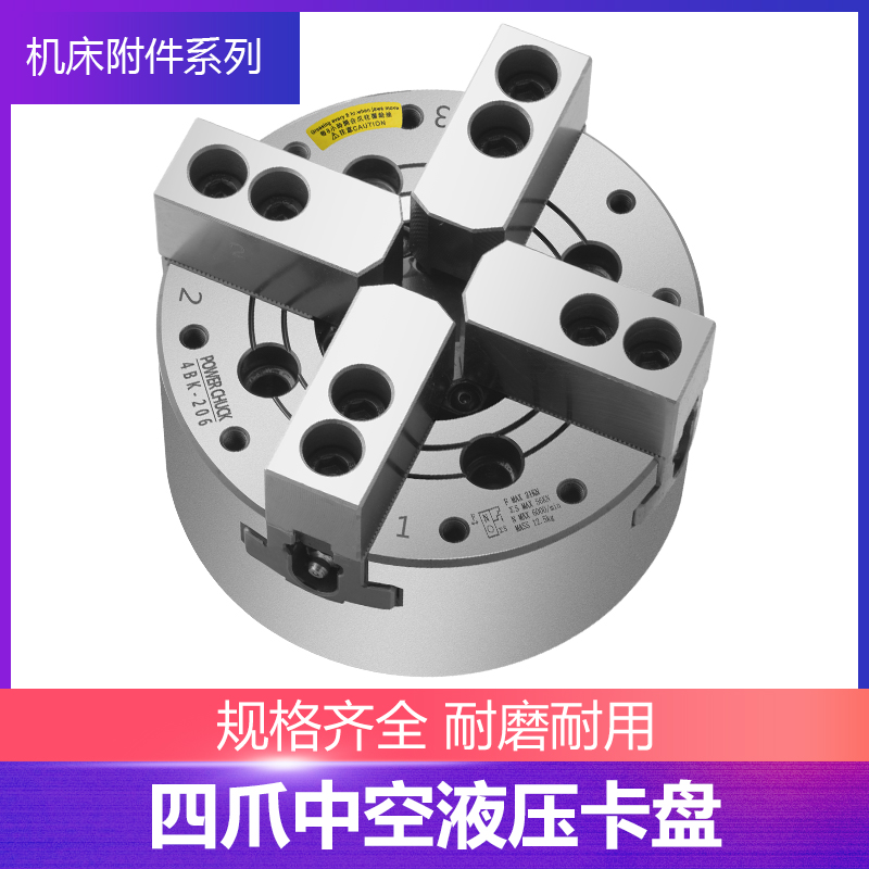 Full steel precision hollow hydraulic four-claw chuck oil pressure power clamping head 5681012 inch Taiwan standard flange plate-Taobao