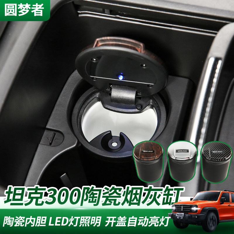 Suitable for the Great Wall Tank 300 car ashtray interior modification ceramic ashtray anti-flying ash with led light and cover