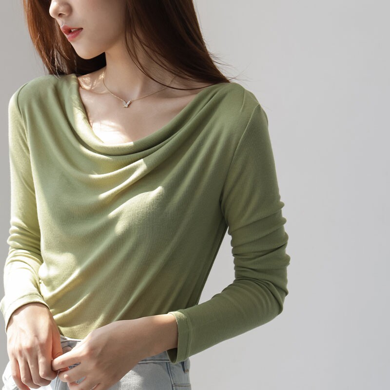 T-shirt women's 2021 new spring and autumn Korean version of slim and thin one-word collar bottoming shirt temperament simple long-sleeved top