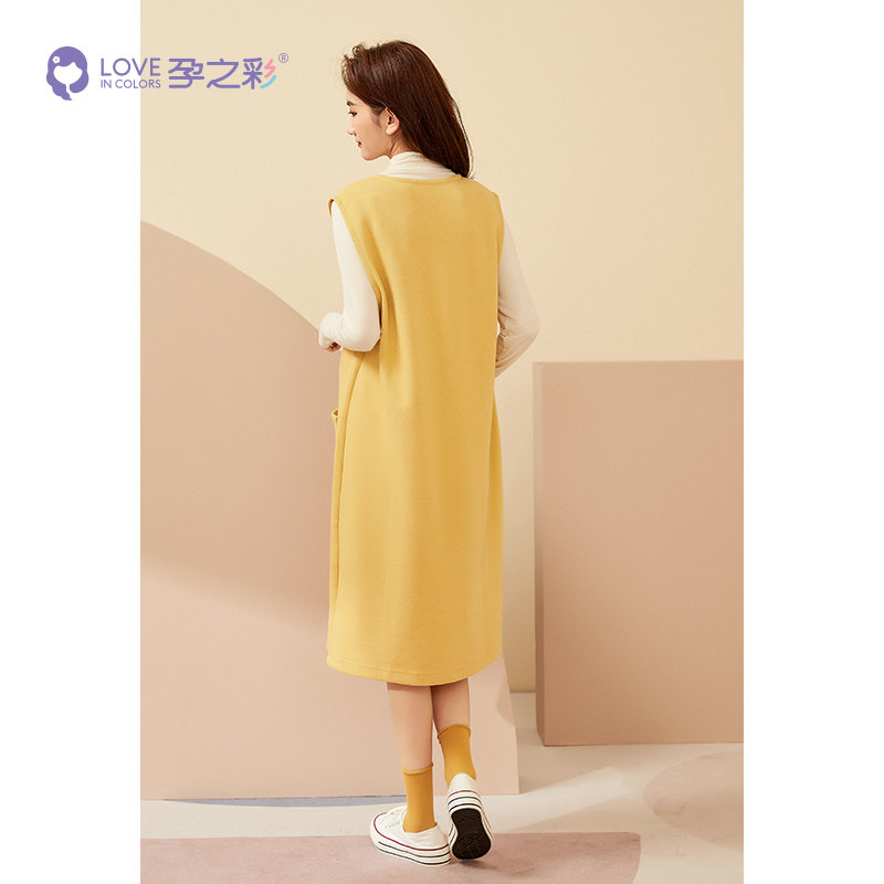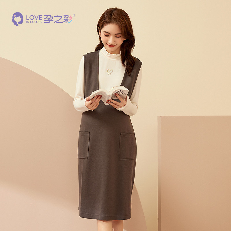 (True Two) Pregnant Pregnant Woman Skirt half high collar large V pendant with dress Spring and Autumn Pregnancy Mother to Work