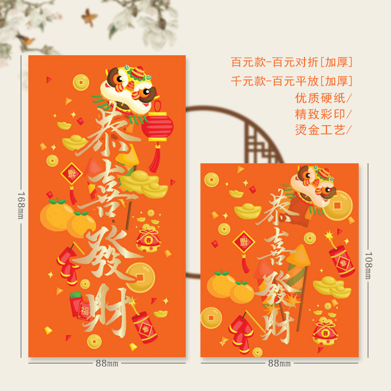 Thousand-yuan envelopes (8 pieces) Hundred-yuan envelopes (12 pieces)