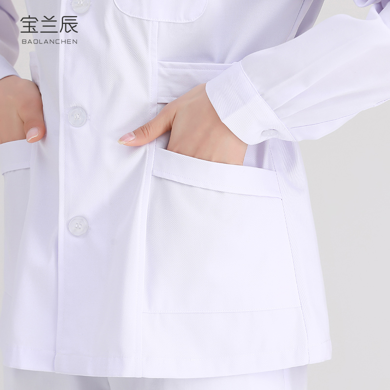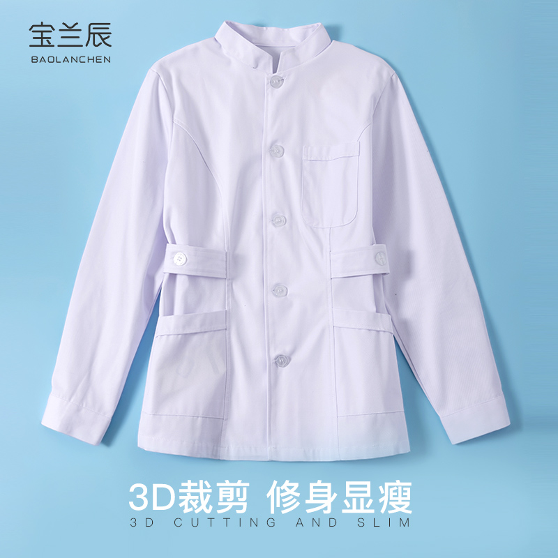 Nurse uniform long-sleeved women's winter white coat stand collar pharmacy work uniform two-piece two-piece suit short custom