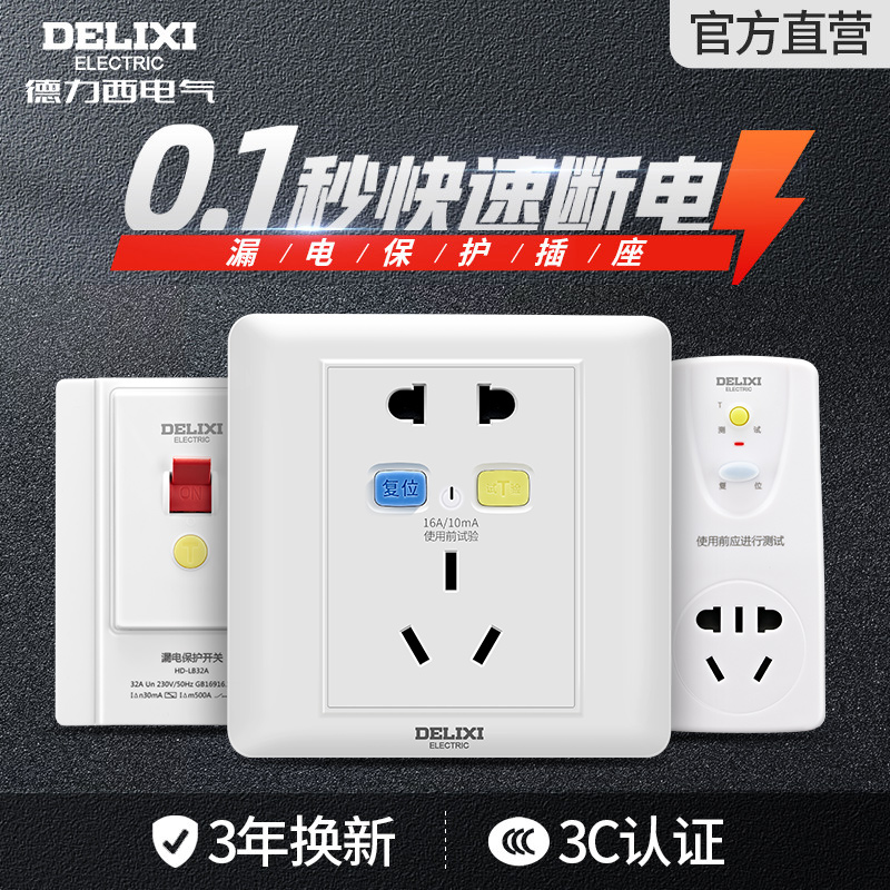 Dresy earth leakage protection plug 16A air conditioning water heater leakage protector plug anti-leakage concealed socket