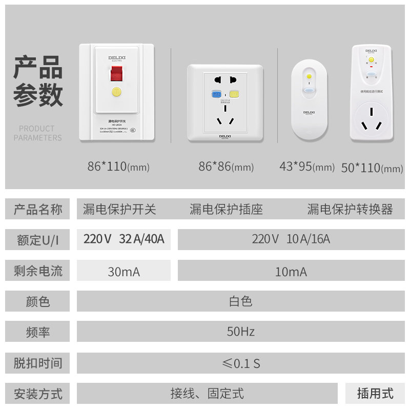 Type 86 Concealed Earth Leakage Protection Socket 10A86 Type Concealed Earth Leakage Protection Socket 16A86 Type Concealed Rated 32A86 Type Concealed Rated 40A Earth Leakage Protection Plug 10