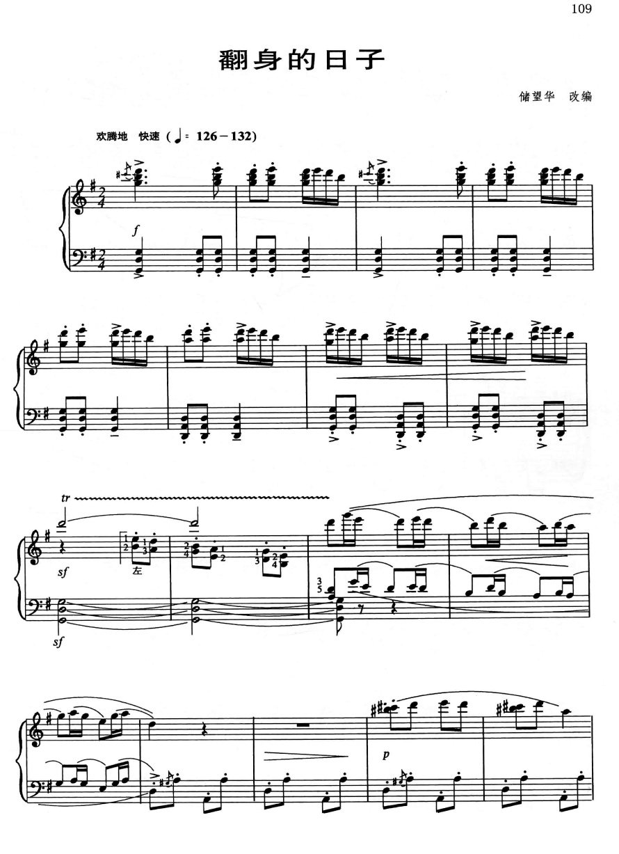 The day when Chu Wanghua turned over, piano score with fingering - 6 pages