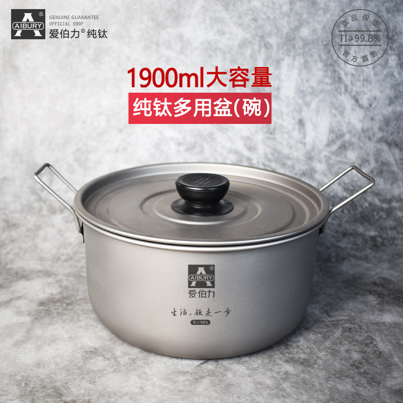 Aiboli pure titanium bowl Public use titanium alloy large salad bowl instant noodle bowl Outdoor boiling water, washing vegetables, cooking soup with ears