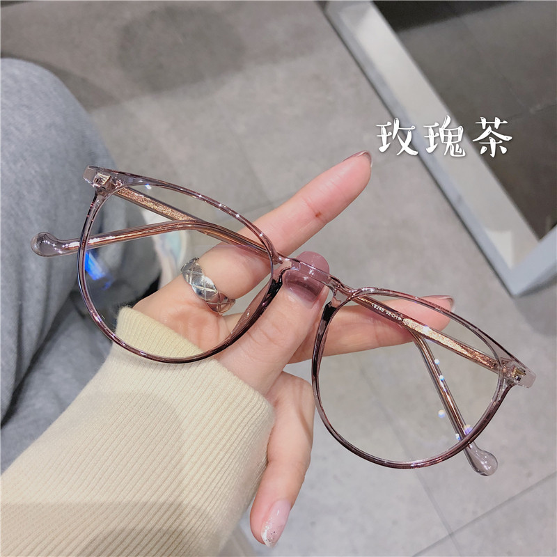 Ultra-light TR myopia glasses female Xiaohongshu Korean version of the same style without makeup round face thin can be equipped with degrees transparent green frame male