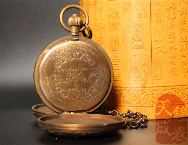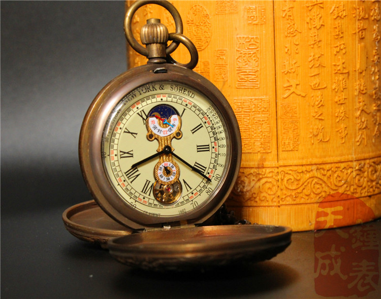 Retro Plum Blossom Pure Copper Double Winding Winding Five-Needle Tourbillon Roman Dial Mechanical Pocket Watch Wall Watch Collection