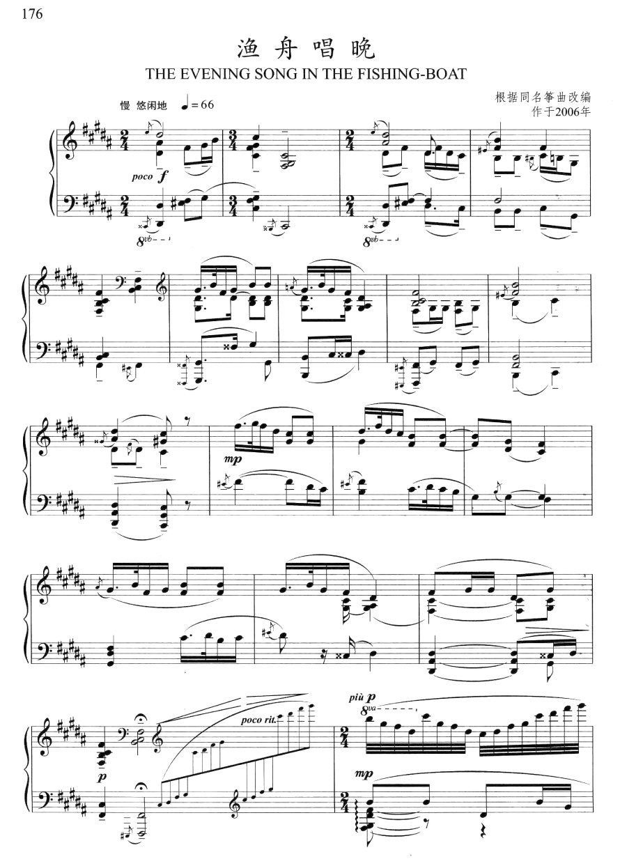 Wang Jianzhong's piano score for fishing boat evening singing - 10 pages