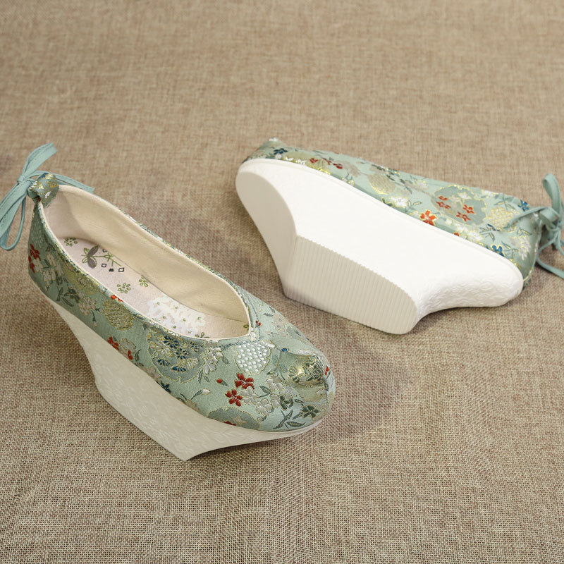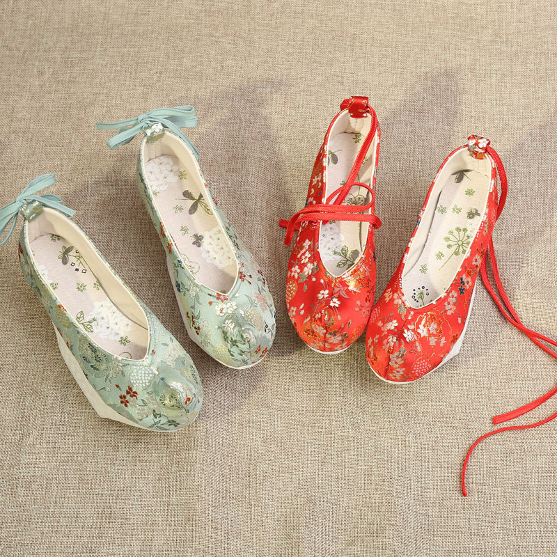 Original hanfu shoes Children ancient flowerpots lattice shoes Ming made of ancient clothes High heels and shoes teething Jubilee such as embroidered shoes