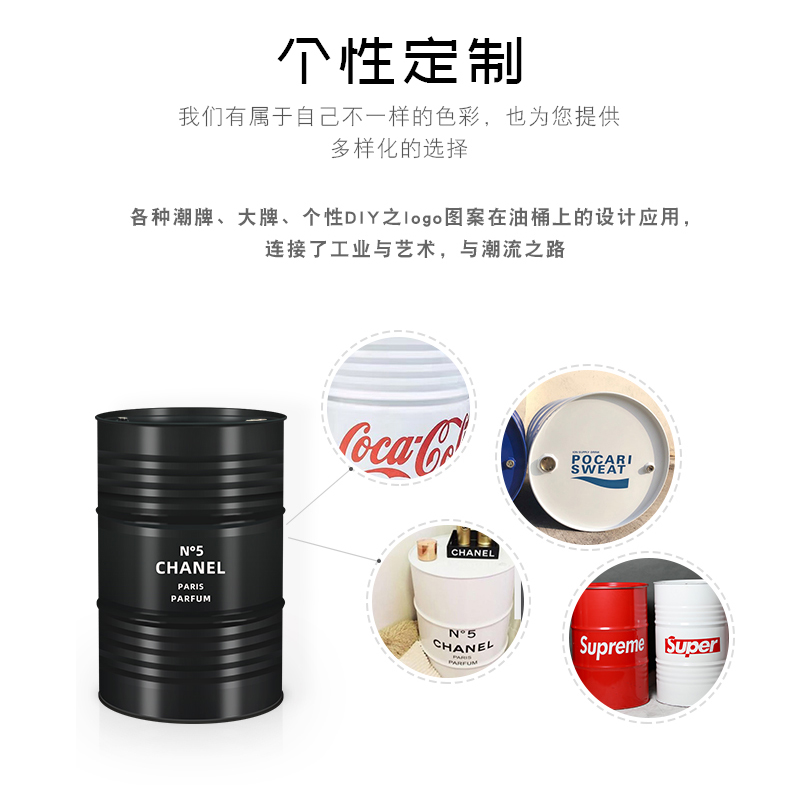 Meichen decoration matte black 200L oil drum printing thickened gasoline large iron drum props creative decoration custom logo