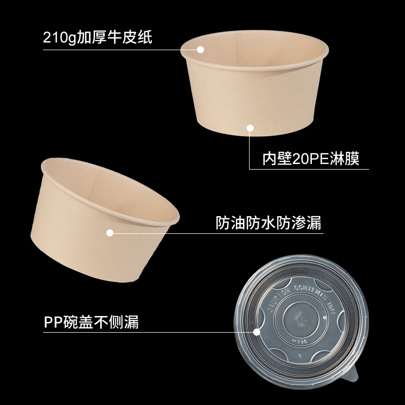 Kraft paper bowl disposable bowl household round thickening output packing bowl convenient lunch box packaging packaging