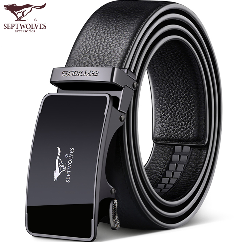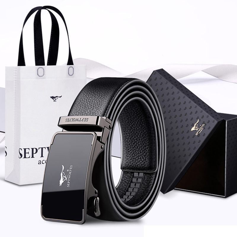 Seven Wolves Leather Strap Men Genuine Leather Automatic Buckle Girdle 2021 New Head Layer Bull Leather Business Men's Type Middle-aged Pants Strap