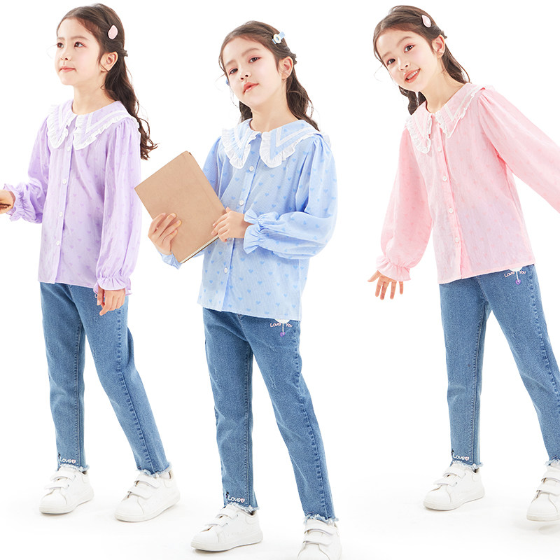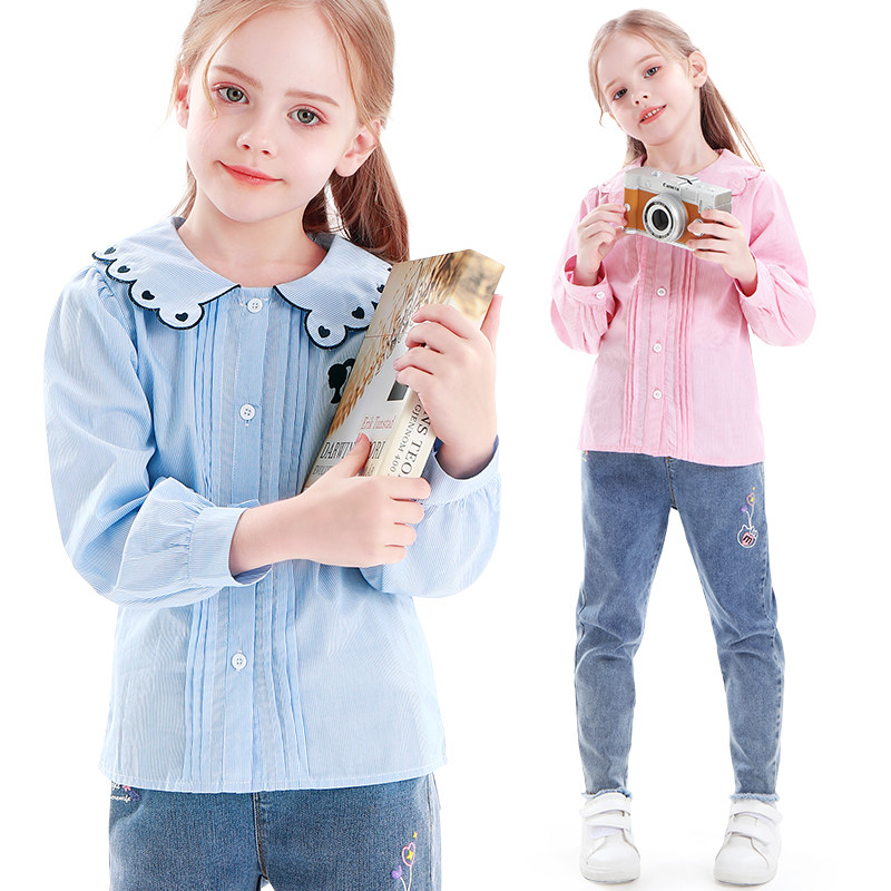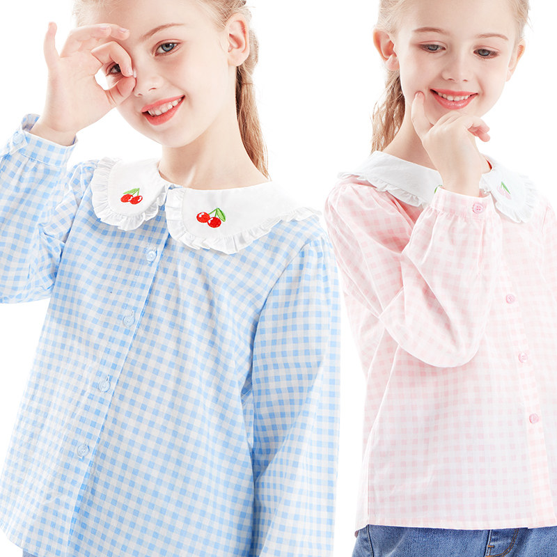 Halal Bin Girl Shirt Long Sleeve Spring Autumn 2021 New Children Plaid Shirt Foreign CUHK Tong Han blouses fashion