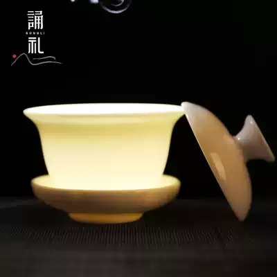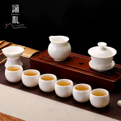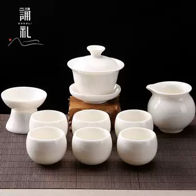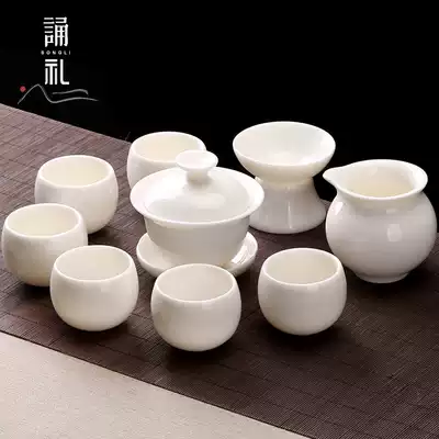 Recitation of high-grade goat Jade tea set set manual Dehui white porcelain office meeting guest Kung Fu Tea Cup Bowl gift box