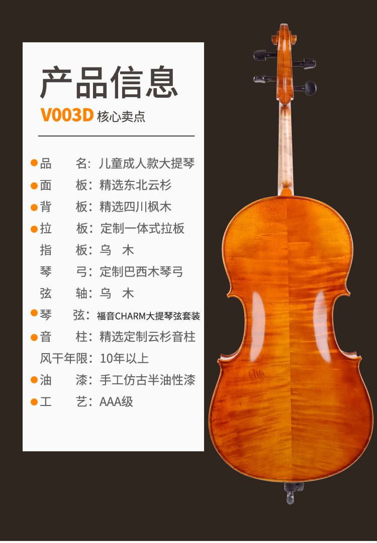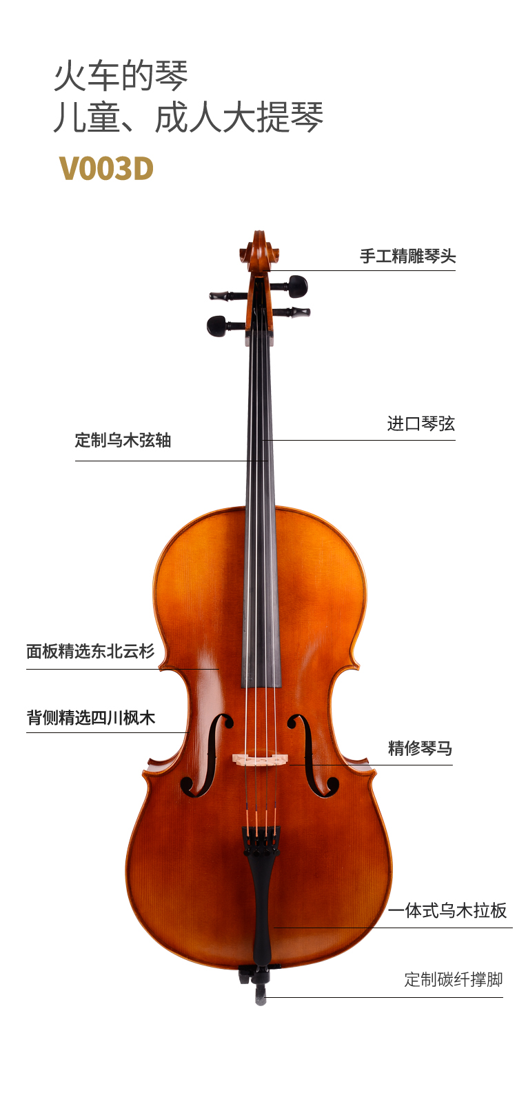 Train's violin cello V003D Adult children Manual Professional Playing Grade Assaulter Solid Wood Cello
