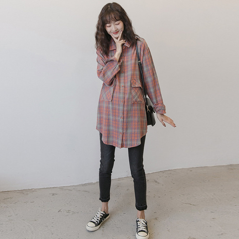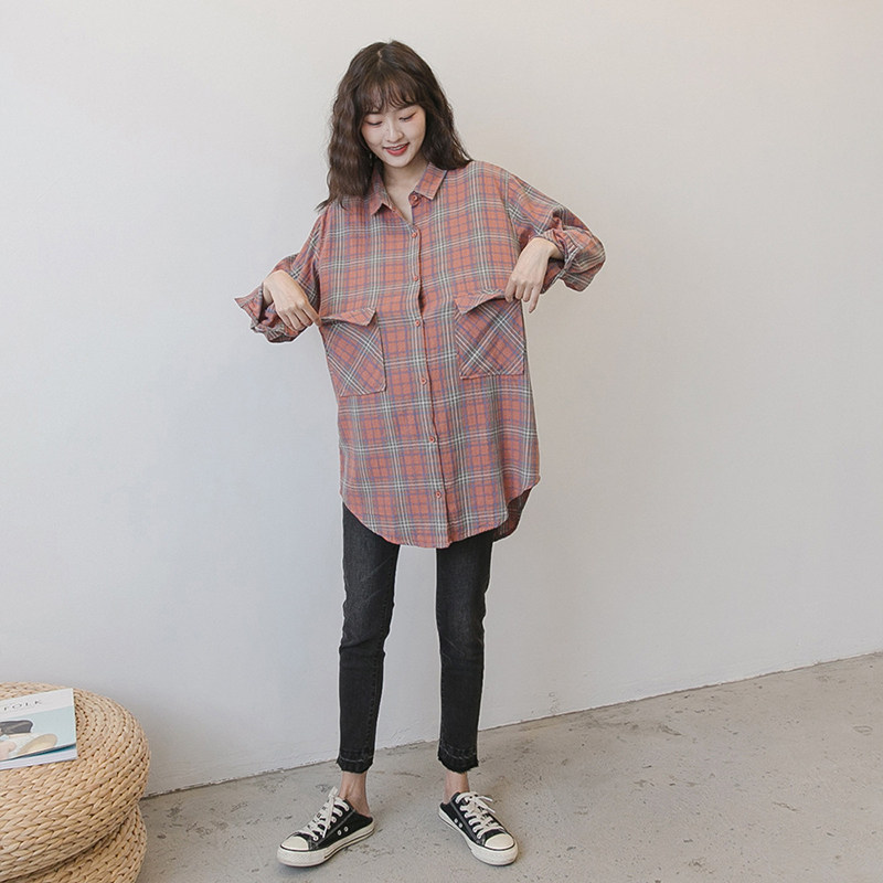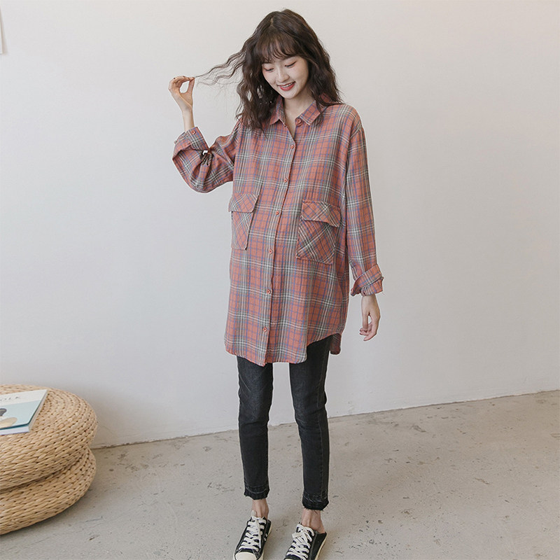 Maternity clothes Spring wear Inner shirt Long sleeve jacket Spring long sleeve top Pregnancy Korean version loose plaid shirt