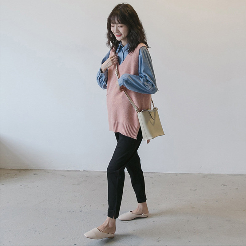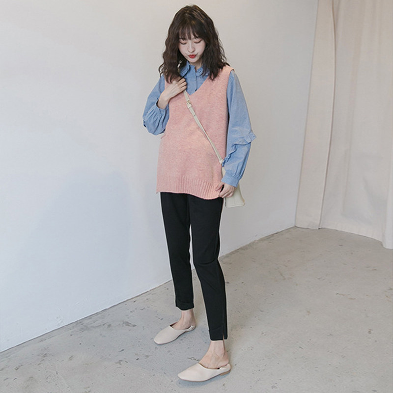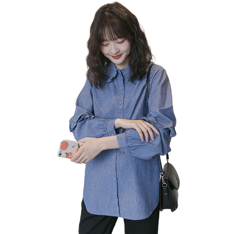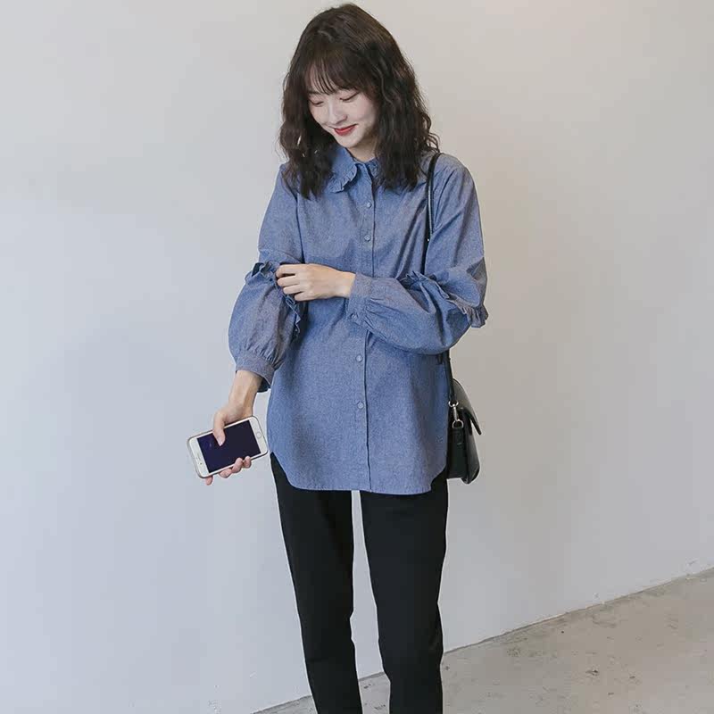 Maternity Spring Dress Korean Version Long Sleeve Top Sweet Fashion Denim Shirt Pregnancy Foreign Spring Maternity Shirt