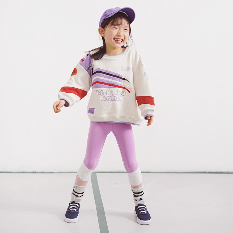 Toothpick Maru and friends girls make a spring multi-color stitching little girl wearing slim long pants