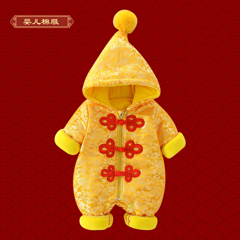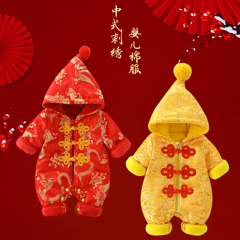 Baby winter clothing Festive New Year's Eve suit Baby hundred days full moon Chinese style baby jumpsuit winter thickened jacket New Year