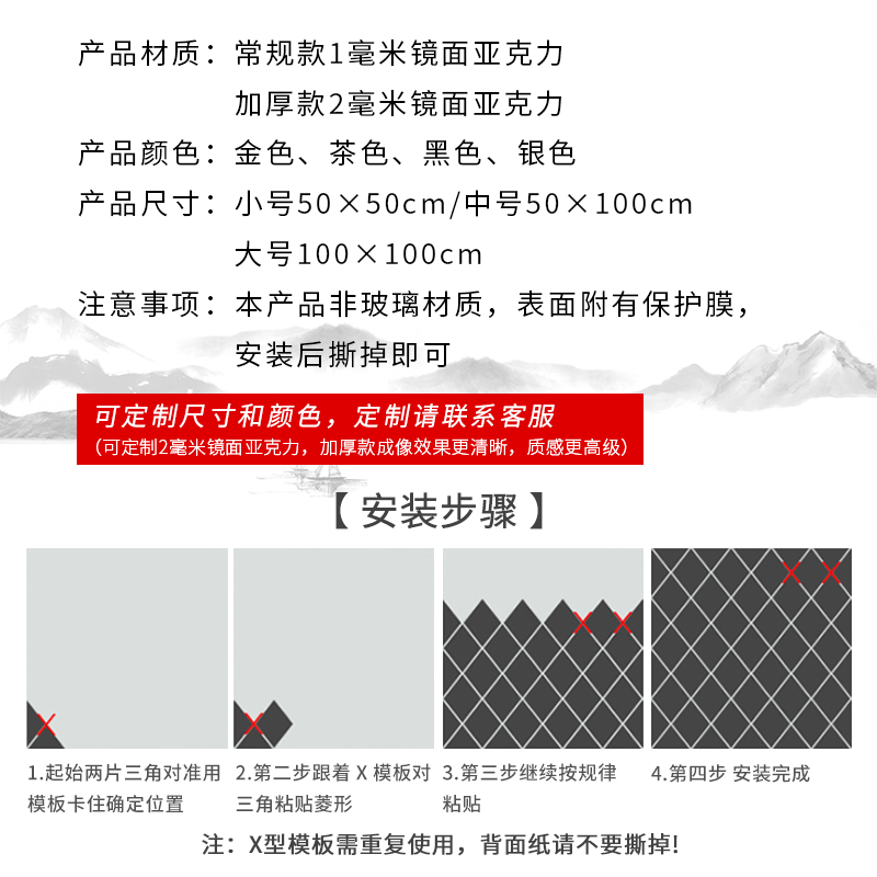 Acrylic 3d stereo wall stickers self-adhesive dining room wall mirror stickers creative living room mirror background wall decoration