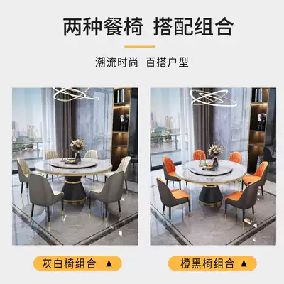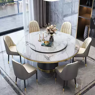 Light luxury marble dining table and chair combination round table Modern simple household round small apartment with turntable rock plate dining table