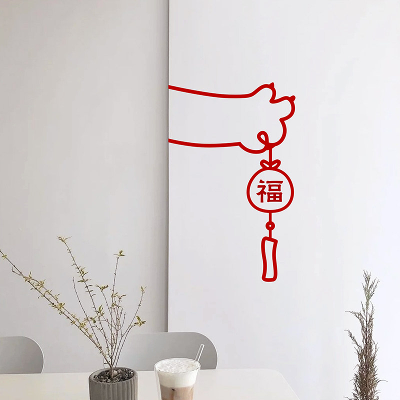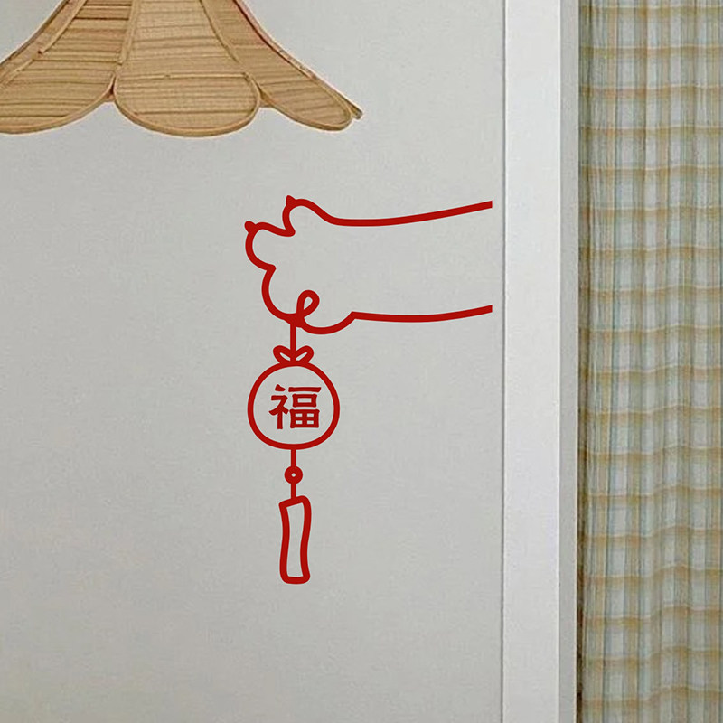 Cat holding blessing bag New Year's blessing stickers New Year's blessing bag decoration glass door stickers window grilles wall decoration stickers layout