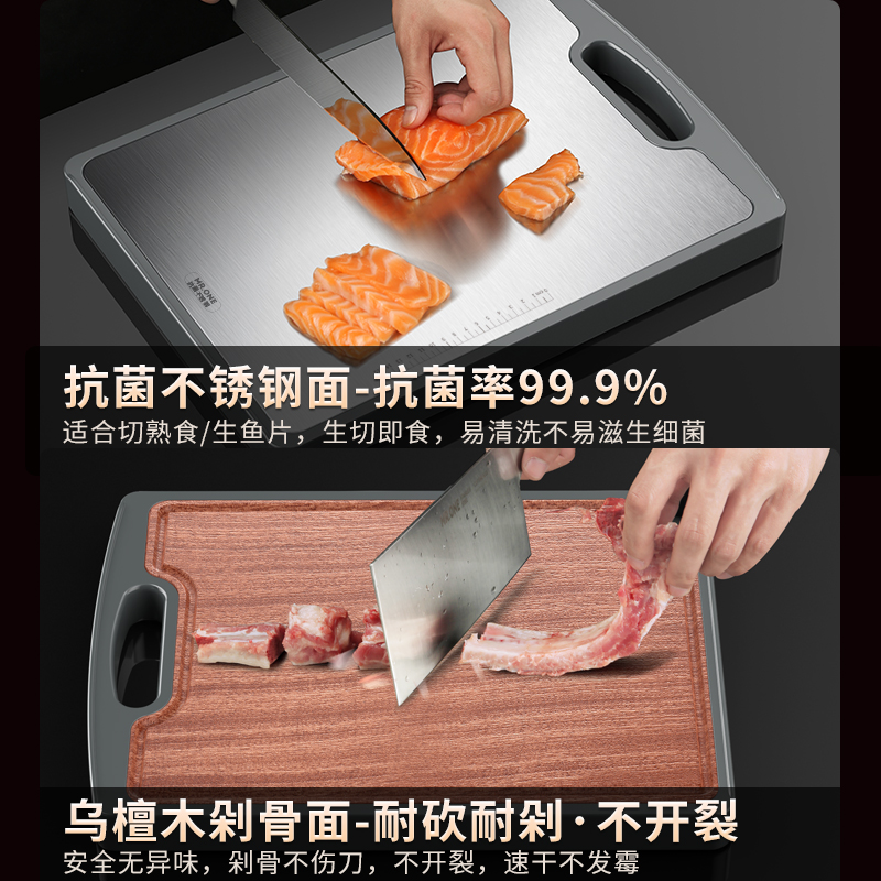 Large (antibacterial stainless steel ebony) double-sided cutting board (send rolling pin) extra large (antibacterial stainless steel ebony) double-sided cutting board (send rolling pin) medium (antibacterial stainless steel ebony)
