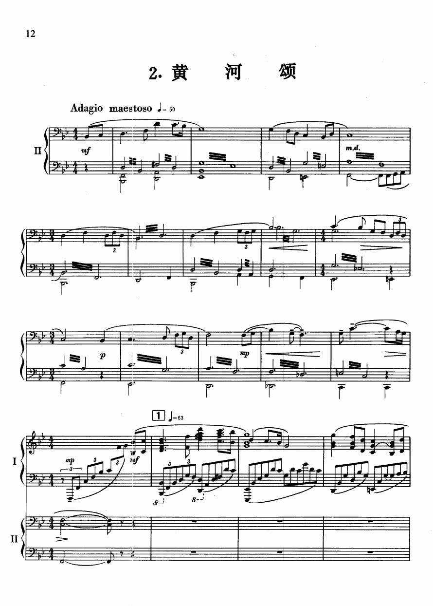 Ode to the Yellow River Double Piano Score Yellow River Concerto Second Movement Two Piano Scores - 6 pages