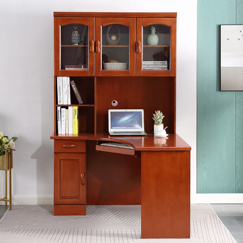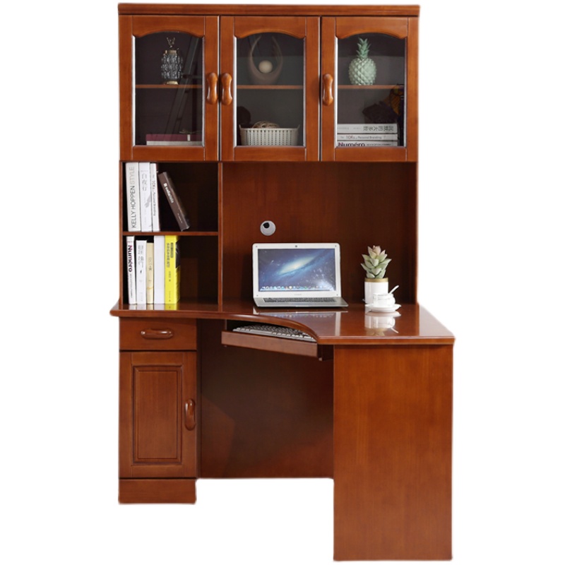 Chinese-style solid wood corner desk combination desktop computer with bookcase bookshelf office learning and writing one-piece desk