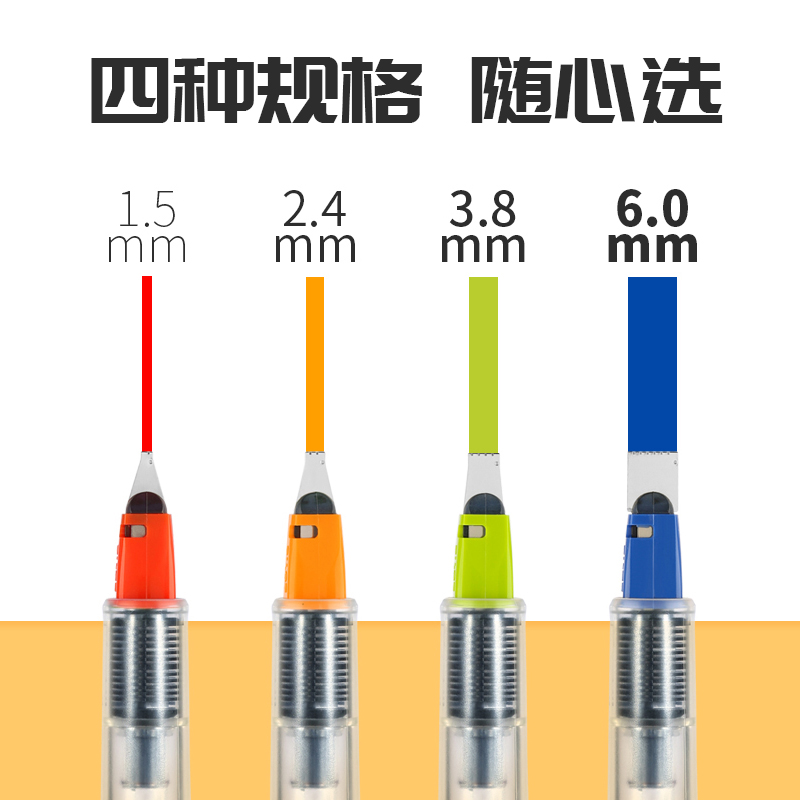 1 5mm red pen cap 2 4mm orange pen cap 3 8mm green pen cap 6 0mm blue pen cap 4 specifications parallel pen each 1 cover 1 5mm red cap pen 12 color ink