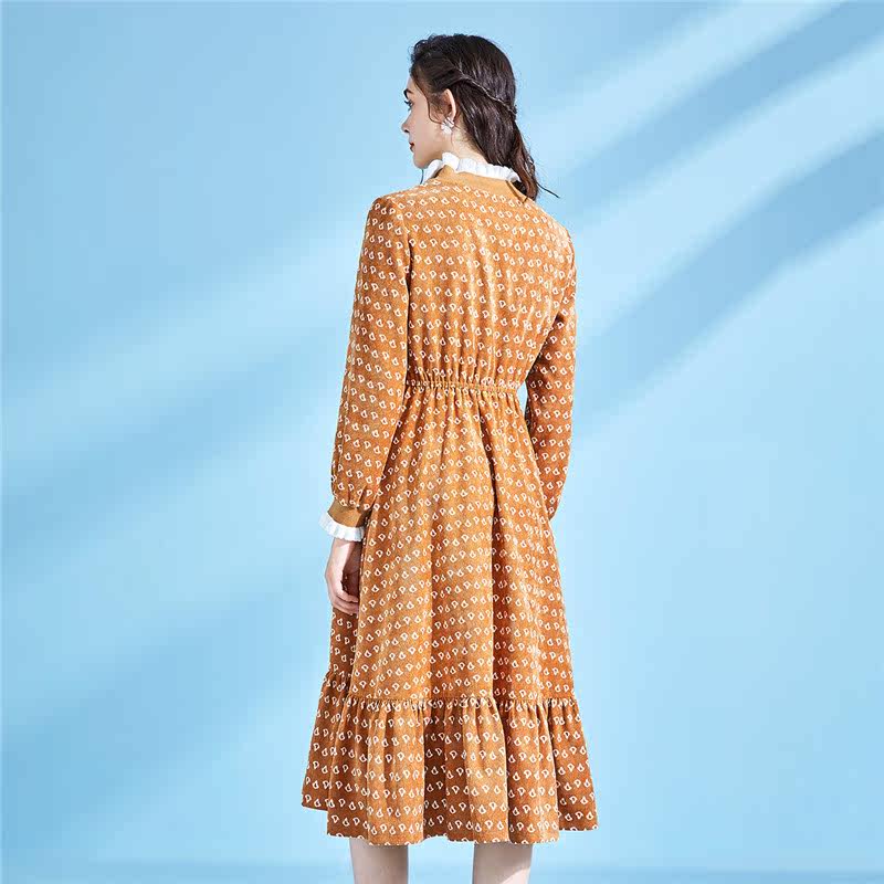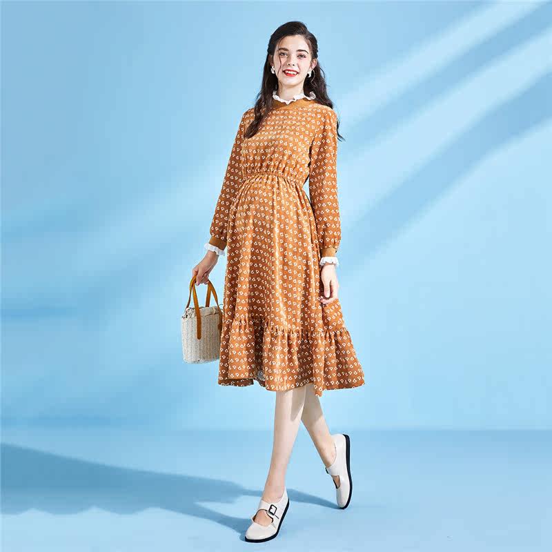 Pregnancy color pregnant woman Ocean dress with early spring high waist standing collar Agaric Side side Sleeves Ocean Dress Splicing Lotus Leaf Side Length Dress