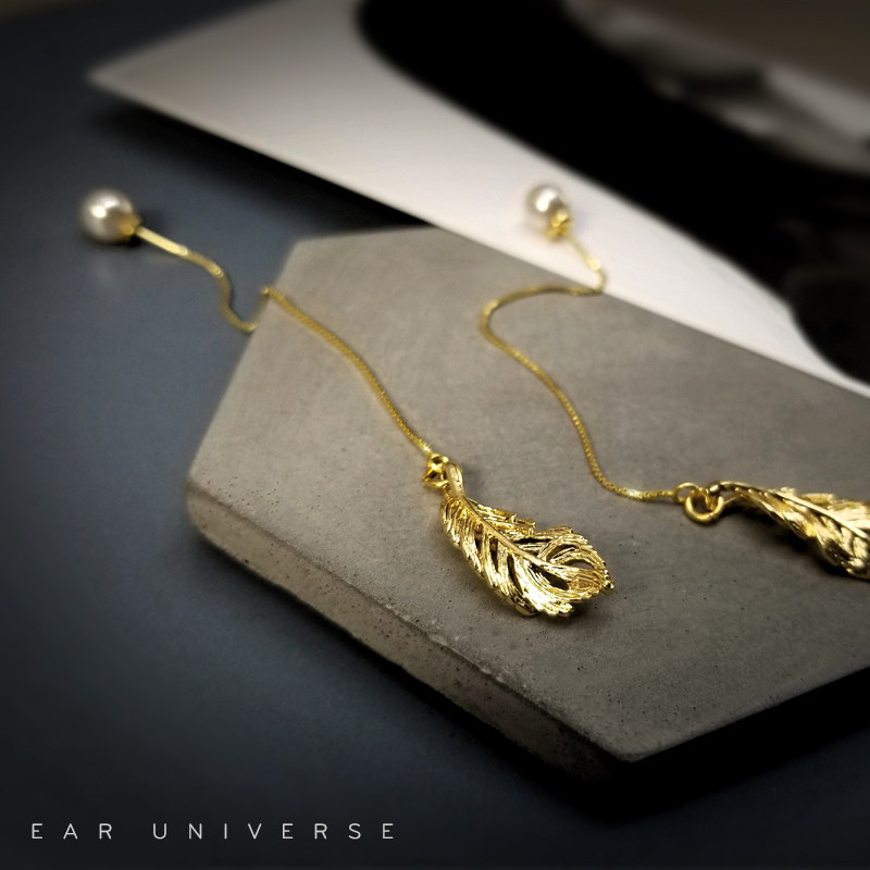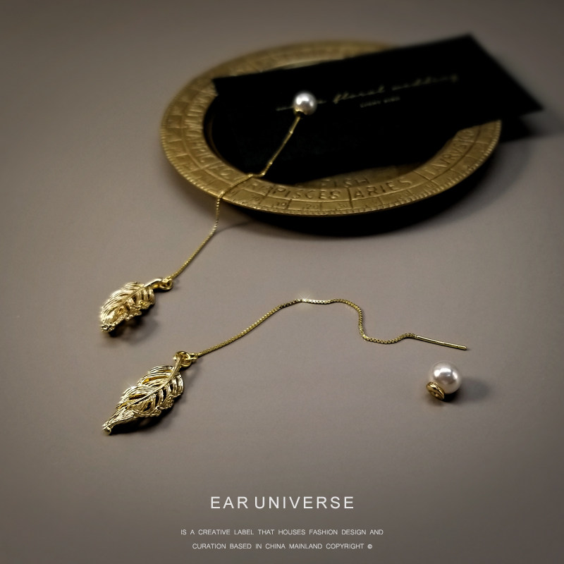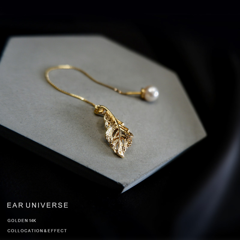 Ear Woo Independent Design Gold Greece Leaves Pearl Advanced Sensation Hand Earrings 925 Wallet Gold Ear Necklace