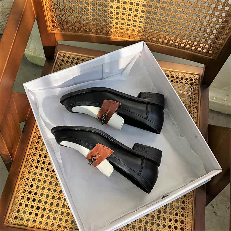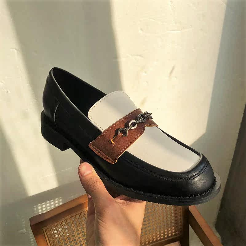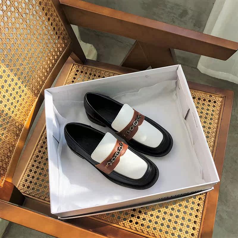 Small leather shoes women's 2022 new wild British style metal chain loafers thick heels thick bottom square toe retro single shoes