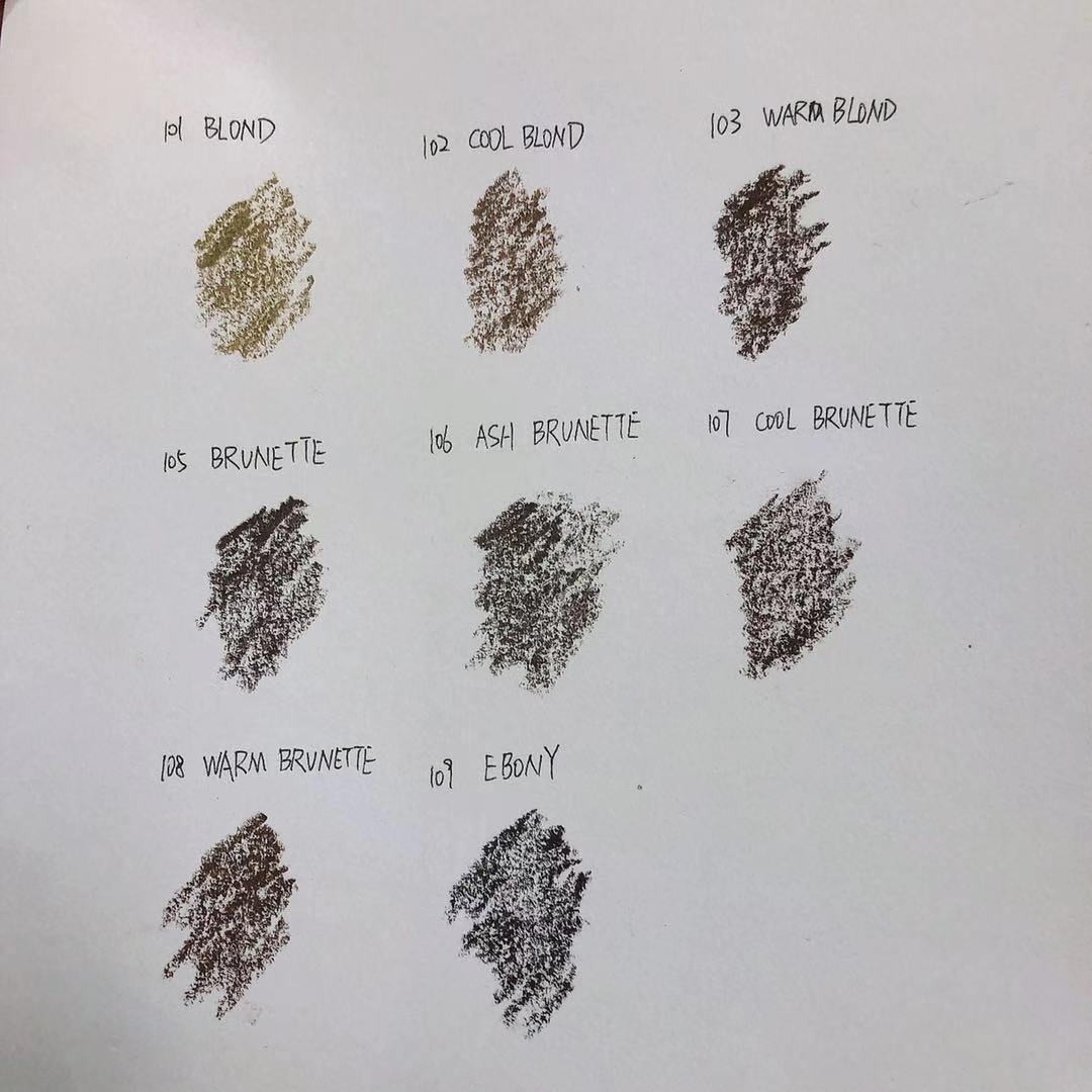 101 BLOND light gold brown 102 COOL BLOND flax brown 103 WARM BLOND warm brown 105 BRUNETTE