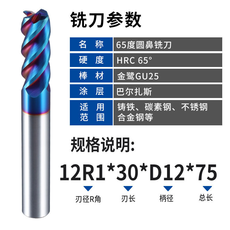 65 degree round nose knife tungsten steel milling cutter alloy end mill 4-edged bull nose knife coating lengthening R1R2CNC CNC cutting tool
