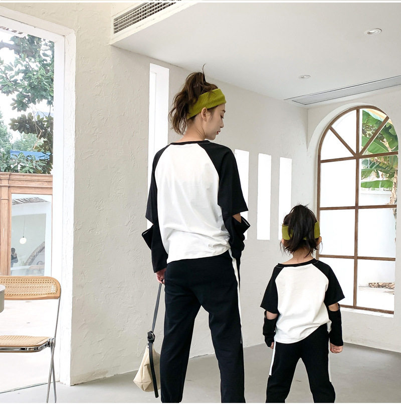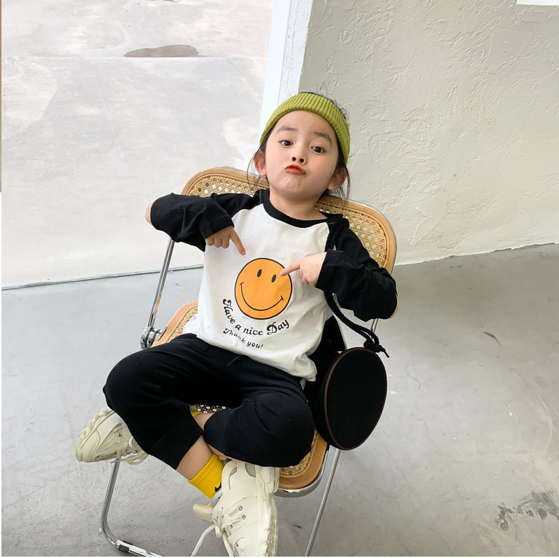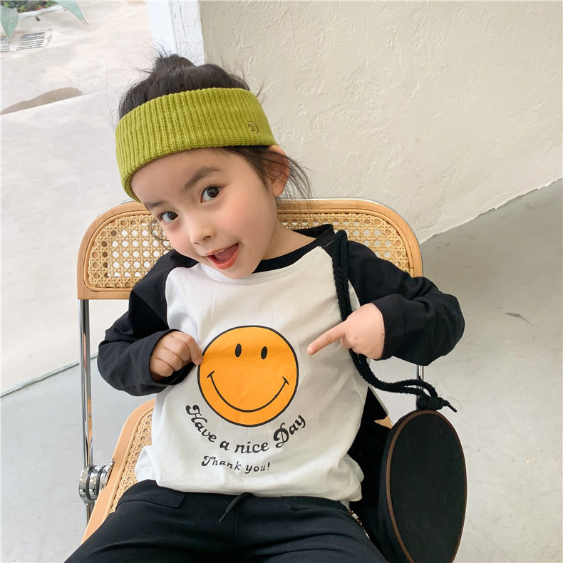 Special parent-child smile T-shirt 2021 spring new contrast color round neck top net red mother-child mother-daughter trend