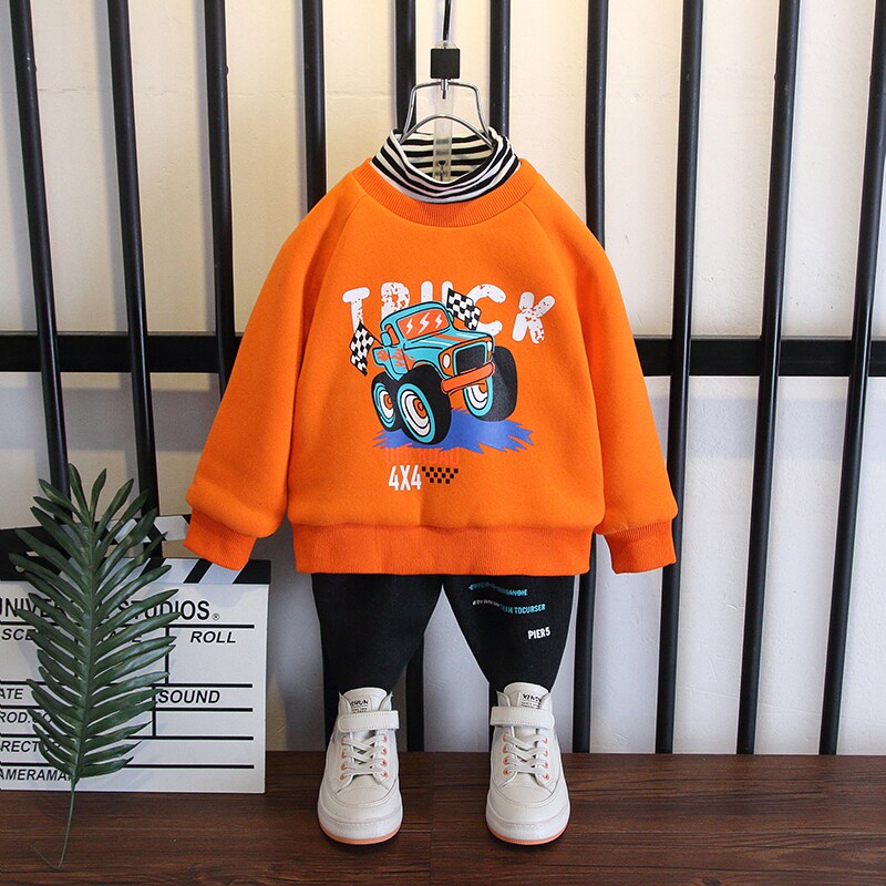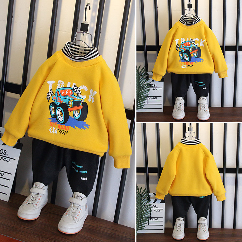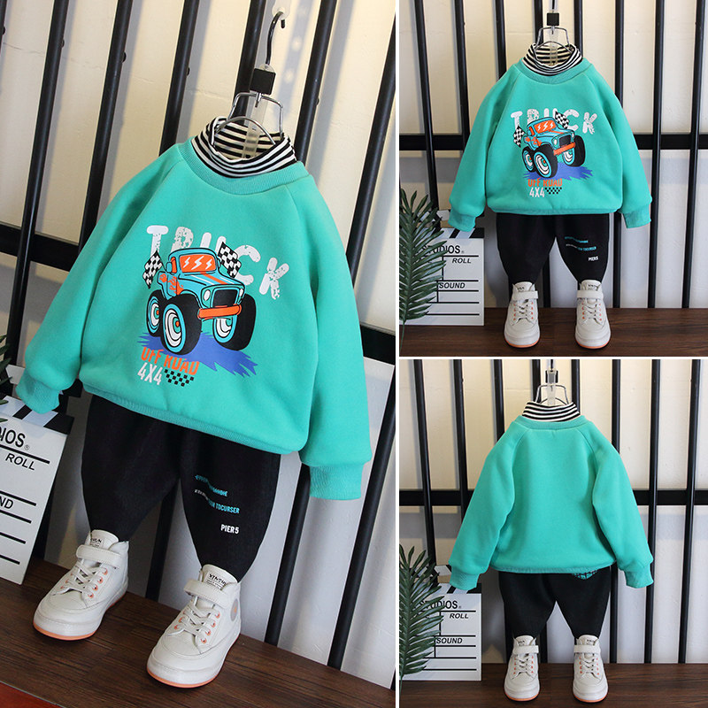 South Korean children's clothes boy plus jacket 2022 new children's leave two high - collar coat boy beat the winter