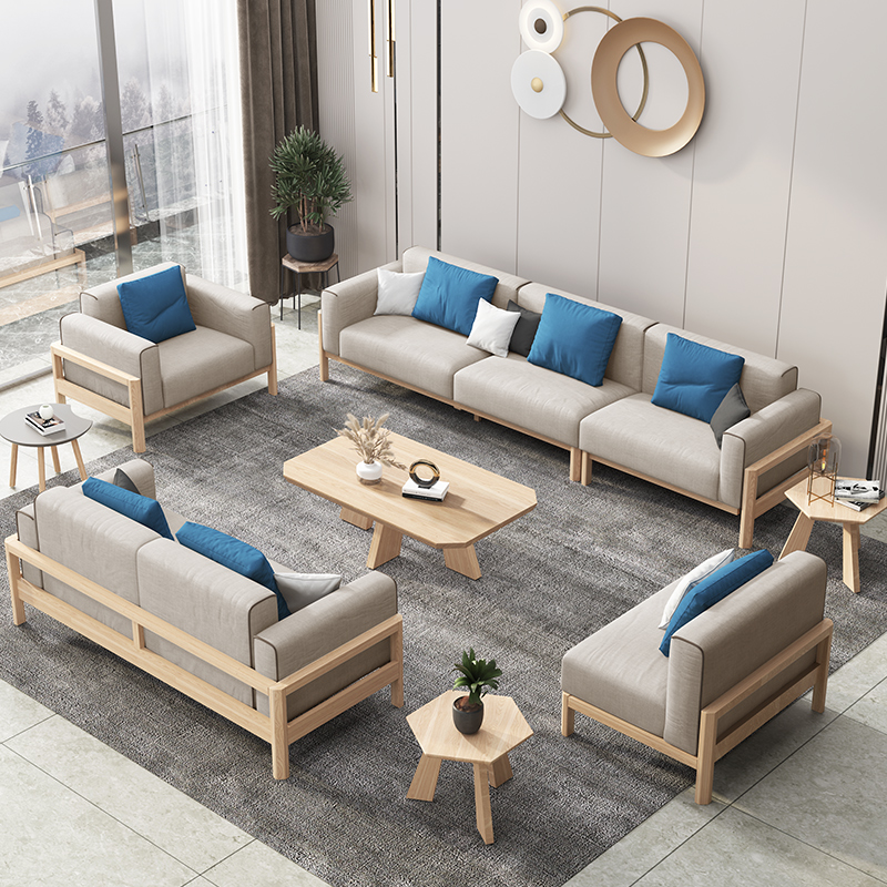 Banlan Nora Furniture Oak Nordic Log Sofa Modern Solid Wood Cloth Art Living Room Size Family Type Combined Sofa