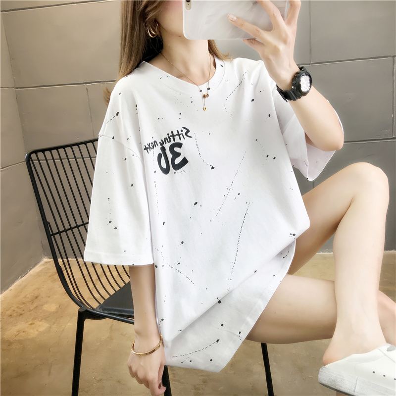 First-line brand cutting label women's foreign trade big-name European goods exported to Italy mid-length cotton short-sleeved T-shirt top