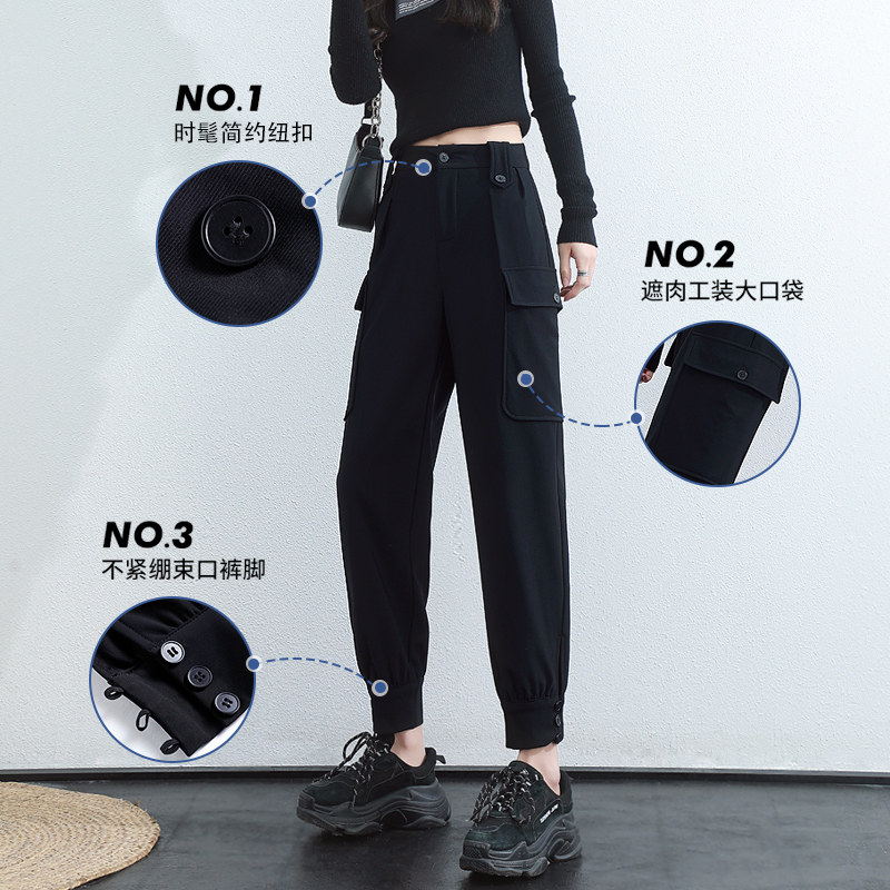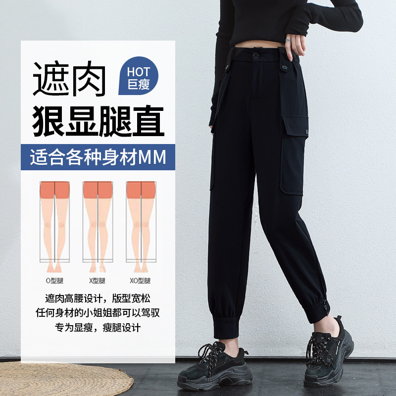 Handsome overalls women's spring and autumn look thin and high waist 2022 new loose small man with feet sports pants ins cool