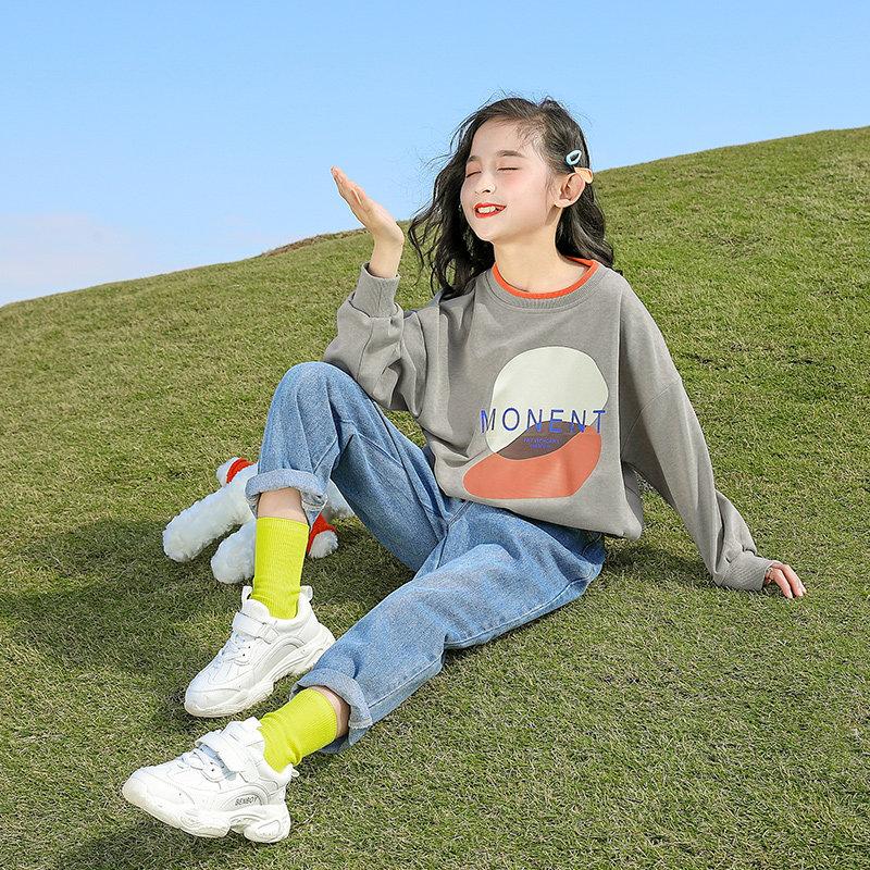 Children's clothing for girls autumn clothing 2022 New foreign pie models CUHK children children's spring and autumn season girls round collar blouses 12 years old