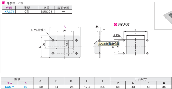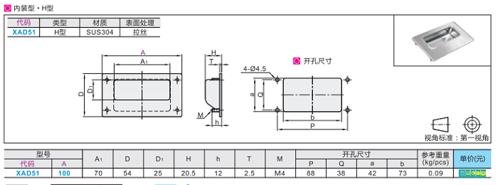 Stainless steel handle XAD51 - A100 handle XAC71 - A90