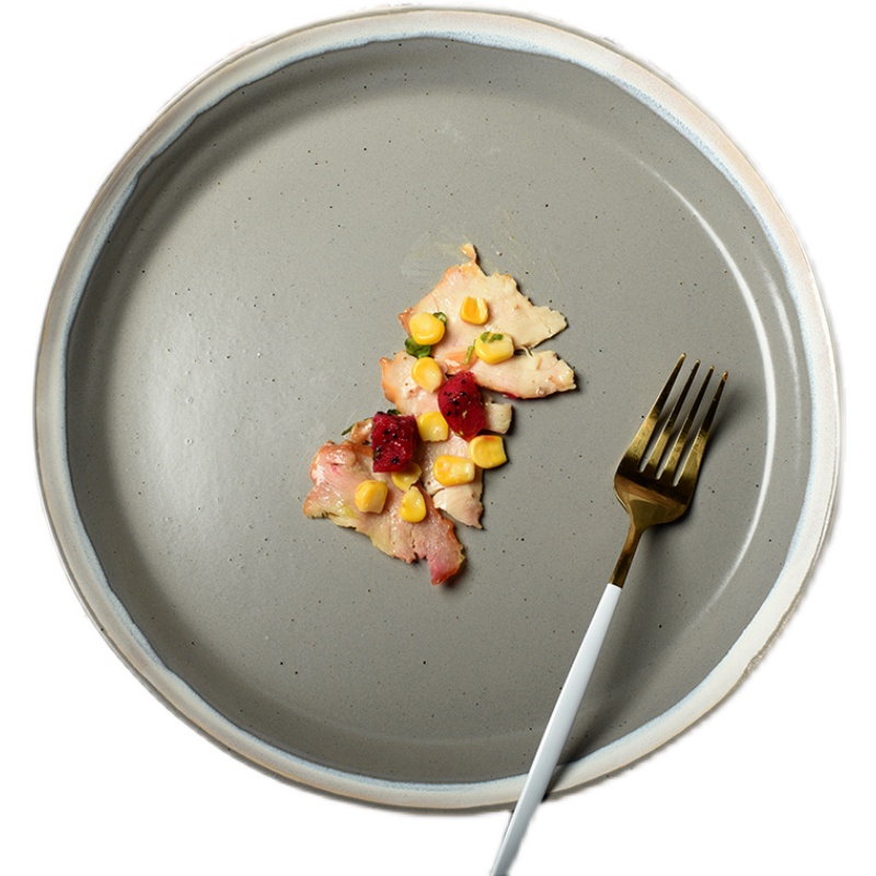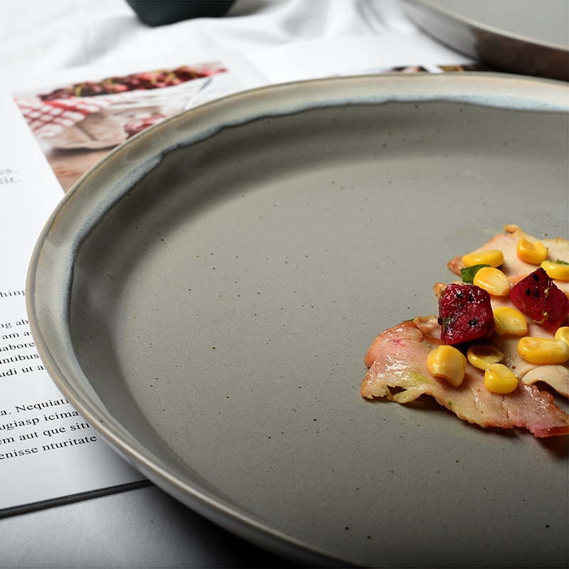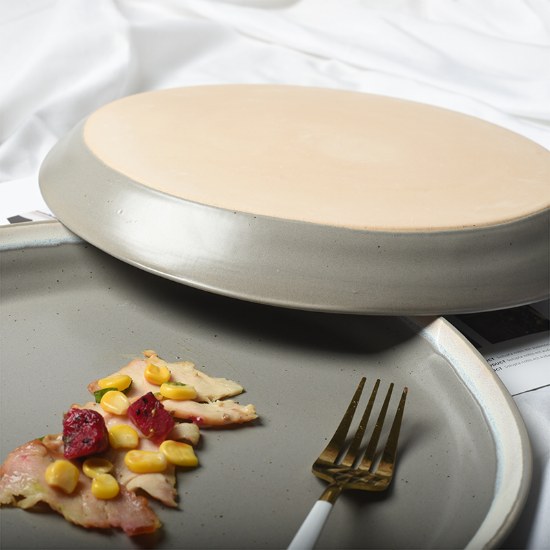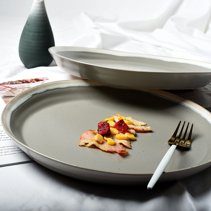 Day Style Retro Wind Color Glazed Pure Color Western Dining Tray Creative Ceramic Steak Tray Home Plate Nursery Cake Pan Blemish