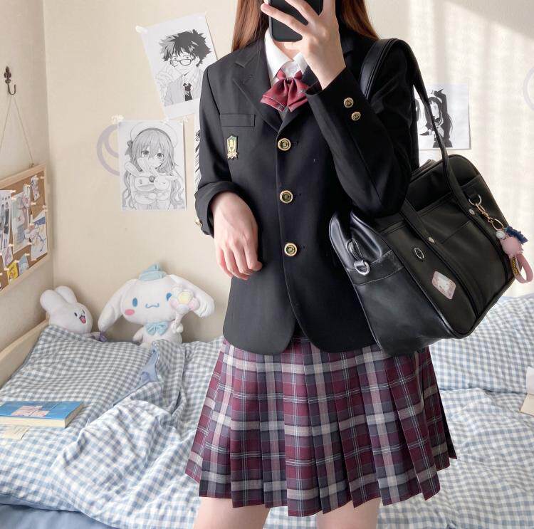 Kasukabe (Akasawa High School) spot original red plaid skirt jk uniform orthodox girl pleated